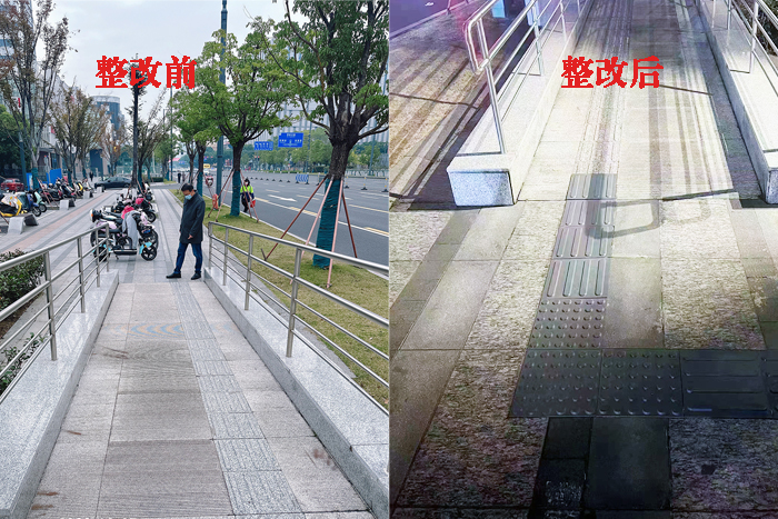 近日,我院向区住建局老城厢办提出南大街街道良茂大厦地铁站无障碍电梯存在配套无障碍设施盲道缺失的问题,区住建局老城厢办迅速启动修复落实整改,目前已完成缺失盲道的补建贯通工程。