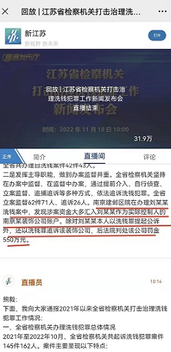 11月18日上午,江苏省必发365娱乐在线官网_哪个才是365官网_bat365官方登录中文院召开全省必发365娱乐在线官网_哪个才是365官网_bat365官方登录中文机关打击治理洗钱犯罪工作新闻发布会,江苏省人民必发365娱乐在线官网_哪个才是365官网_bat365官方登录中文院副必发365娱乐在线官网_哪个才是365官网_bat365官方登录中文长熊毅在发布会中对通报了2021年以来全省必发365娱乐在线官网_哪个才是365官网_bat365官方登录中文机关打击治理洗钱犯罪工作进行通报,其中对我院在办理刘某某洗钱案中发挥主导职能、追诉单位犯罪的做法予以肯定。